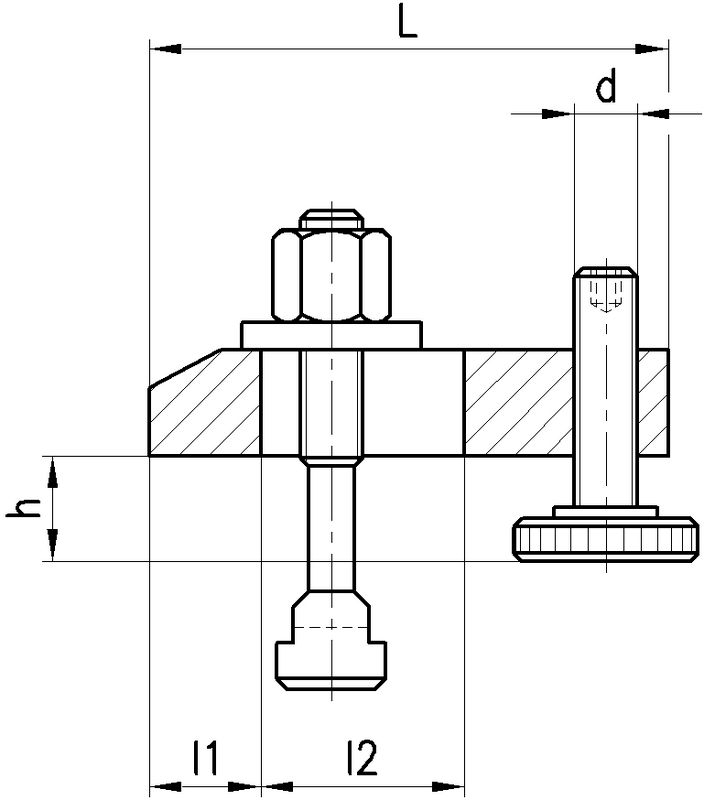 Einsatzfertig mit T-Nutenschraube Güte 8.8, Mutter, Scheibe, Verstellschraube.