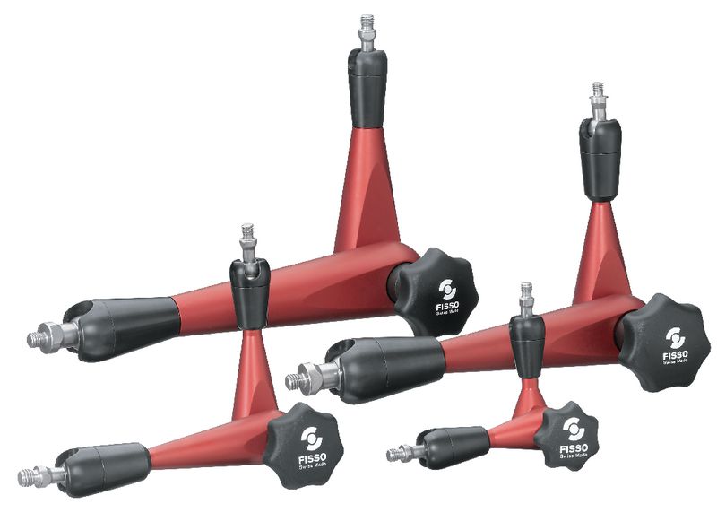 SwissMadeGeeignet als Anbauelement im Maschinen- und Apparatebau. Unbeschränkt beweglich, mit einem Griff fixiert, sehr hohe Stabilität, Arme aus eloxiertem, hochwertigem Leichtmetall.