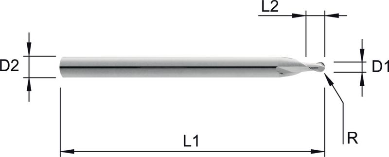 Micropräzisionsfräser Z=2, 1.5xD1 mit Radius
