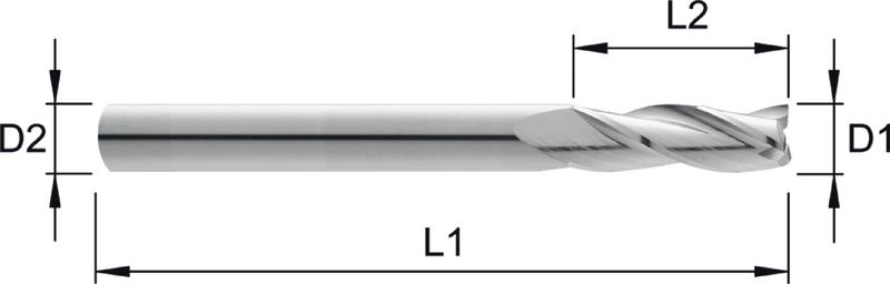 Schlicht Schaftfräser Z=3, D1=D2, λ30°
