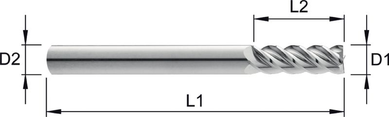 Schlicht Schaftfräser Z=4, D1=D2, λ45°