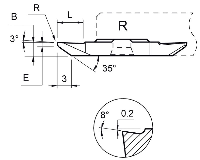 Wendeplatte R Typ 263VX-8°, rückwärts drehen mit Spanroller