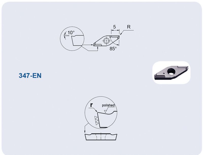 Wendeplatte R mit Spanbrecher Typ 347-EN, mit Verstäkter Schneidkante