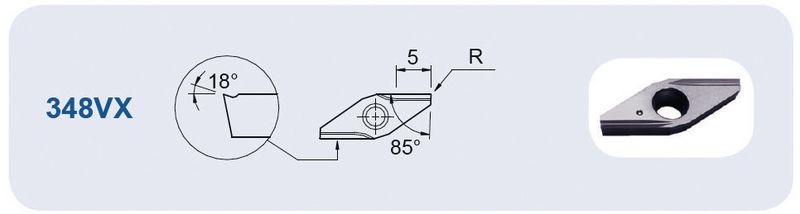 Wendeplatte R mit Spanbrecher Typ 348VX, hoch positiver Spanwinkel