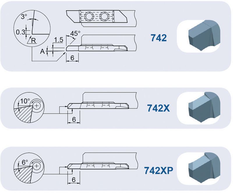 Wendeplatte R Typ 742X, vorwärts drehen mit Spanwinkel