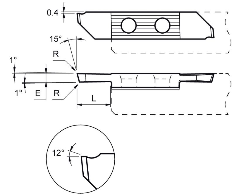 Wendeplatte Typ 751RX12, rechtshand abstechen versetzt für Werkzeughalter links, 12° Spanwinkel