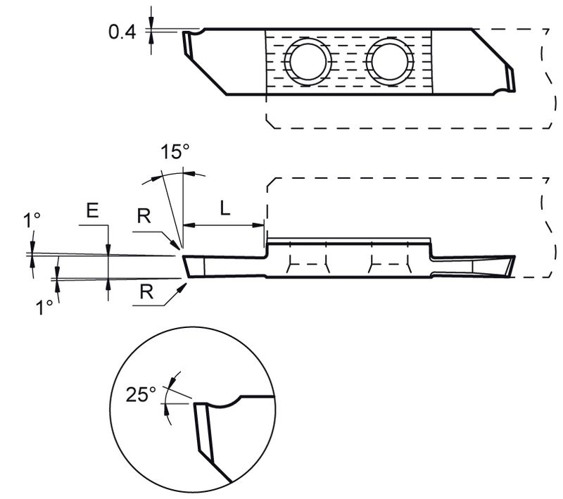 Wendeplatte R Typ 761X25, abstechen mit 25° Spanwinkel
