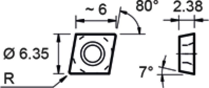Wendeplatte 80° Typ CCMT-06, EN-XF2, kleinste Schneidkante behandlung