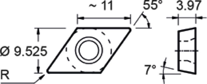 Wendeplatte 55° Typ DCGT-11, FN-X8°, scharfe Schneidkante