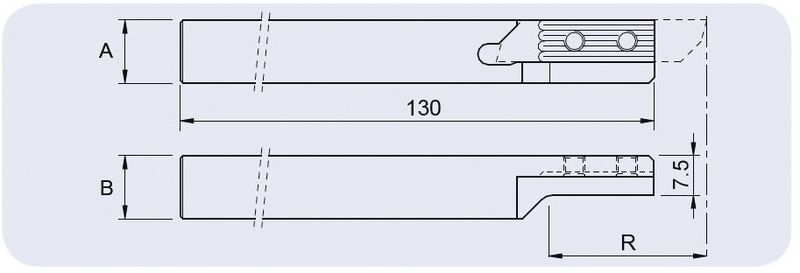 Verschmälerter Werkzeughalter Typ 750RC, zum Abstechen auf Gegenspindel Seite auf rechtshand drehende Maschine