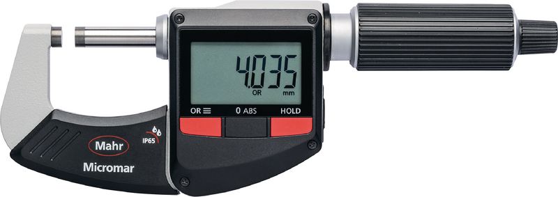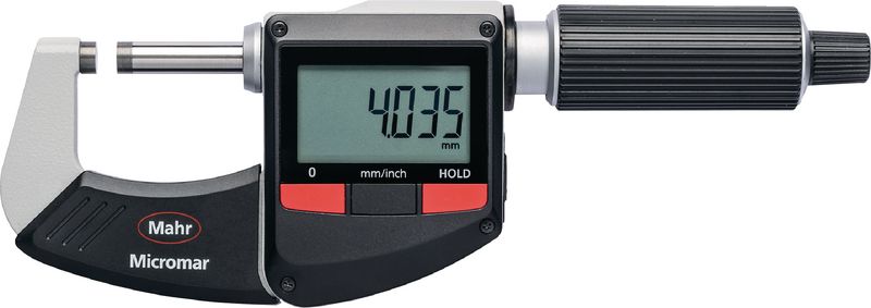 Ausführung mit kontrastreicher LCD-Anzeige, Messflächen mit Hartmetall bestückt, Messspindel rostfrei, gehärtet und geschliffen. Ratsche in Messtrommel integriert. Stahlbügel mit Wärmeisolierung.