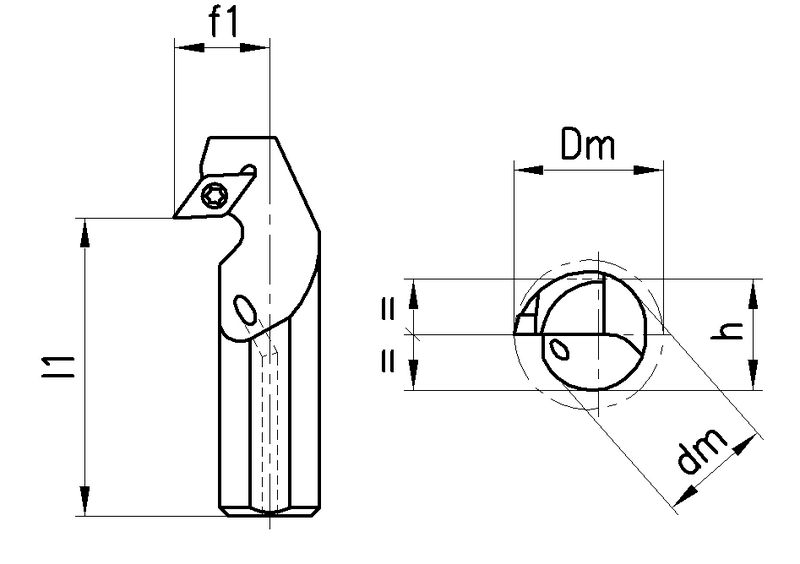 Innenkühlung, max. Ueberhang 4 x dm, Spanwinkel 0°, Neigungswinkel 1°