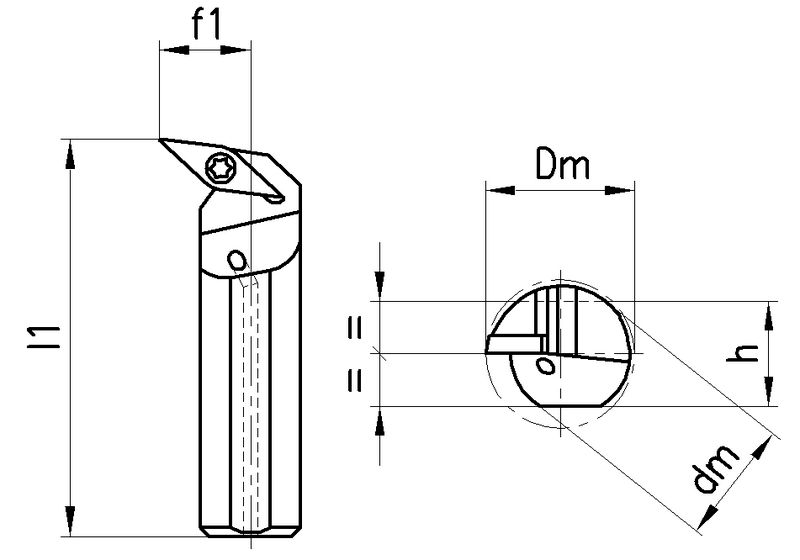 Innenkühlung, max. Ueberhang 4 x dm, Spanwinkel 0°, Neigungswinkel 0° bis -9°