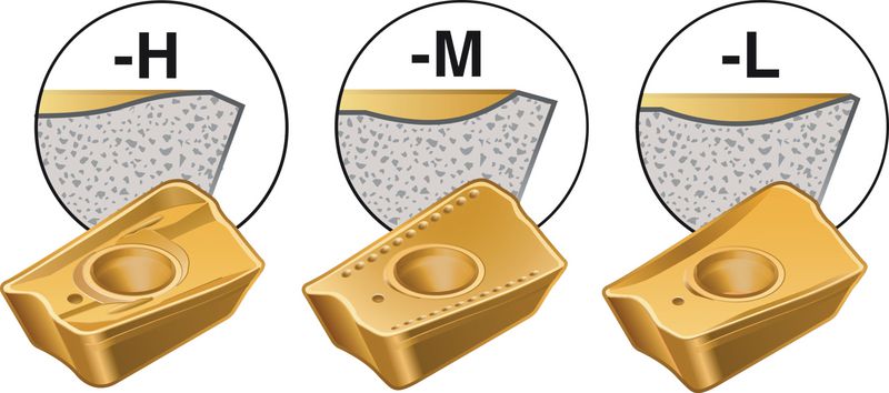 Geometrien:H- (HEAVY):Verstärkte Schneidkante, Schwere Bearbeitung, Höchste Schneidkantensicherheit, Hohe Vorschübe möglich