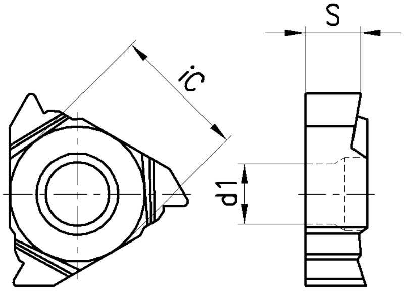 Innengewinde, Teilprofil 60°.Sorten:1020: TiCN-/TiN-Beschichtung, breiter Anwendungsbereich.