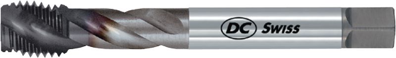 Spiralnuten 40°, SwissMade, HSS-E, TiCN-Beschichtung, Metrisches ISO-Gewinde, Rechtsgewinde, Toleranzfeld ISO2 / 6H, Anschnittform C (2-3 x P), Zylinderschaft mit Vierkant, Anzahl Zähne 3 Leistungsklasse N Für langspanende Werkstoffe mit einer Zugfestigkeit von Rm > 350...1000 N/mm2. Anschnittlänge: 2.5 x PLochart: Sackloch < 2.5 x d. Ausführungen: M3...M10: N360TC-3, Schaft verstärkt, DIN 371 M12...M16: N460TC-3, Schaft durchfallend, DIN 376