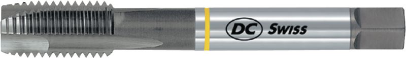 gerade Nuten, Schälanschnitt, SwissMade, HSS-E_PM, Metrisches ISO-Gewinde, Rechtsgewinde, Toleranzfeld ISO2 / 6H, Anschnittform B (3.5-5.5 x P), Zylinderschaft mit Vierkant, Anzahl Zähne 2-3 Leistungsklasse W Für weiche Werkstoffe mit einer Festigkeit > Rm 500 N/mm2 wie Aluminium, Magnesiumlegierungen, zum Teil Buntmetalle oder Thermoplaste. Anschnittlänge: