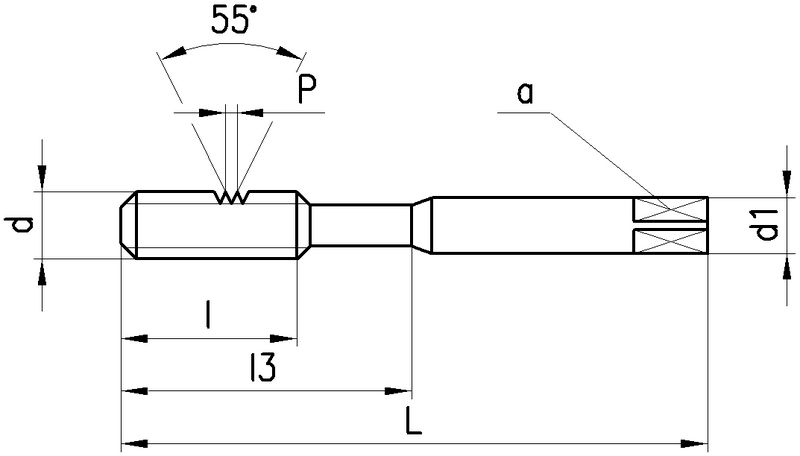 Fertigschneider Nr. 3, kann auch als Einzelschneider verwendet werden, bis 1.5 x D, SwissMade, HSS-E, Whitworth-Gewinde, Rechtsgewinde, Anschnittform C (2-3 x P), Zylinderschaft mit Vierkant, Anzahl Zähne 3 Leistungsklasse N Für normale Werkstoffe. Anschnittlänge: 2 x P Lochart: Durchgangsloch und Sackloch < 1.5 x d. Ausführungen: W 3/16"...W 3/8": N1110-3, Schaft verstärkt, DIN 529 W 7/16"...W 3/4": N1210-3, Schaft durchfallend, DIN 529