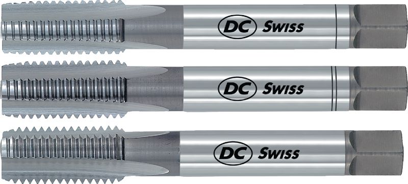 3-teilig, SwissMade, HSS, Metrisches ISO-Gewinde, Rechtsgewinde, Toleranzfeld ISO2 / 6H, Zylinderschaft mit Vierkant, Anzahl Zähne 3-4