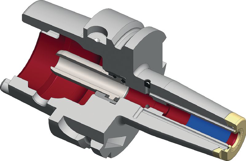 Typ KSS Verwendung: Schrumpffutter mit Düsenring für die effiziente Zerspanung auch von tiefen Rippen und Kavitäten. Höhere Werkzeugstandzeiten und Oberflächengüten durch optimale Spanevakuation und Kühlung. KSS: Geeignet für alle Medien die mit Emulsion, trockener Luft und Voll-Öl arbeiten. Besonderheit: Der Düsenring darf nun auch während des Schrumpfvorganges auf dem Futter verbleiben.