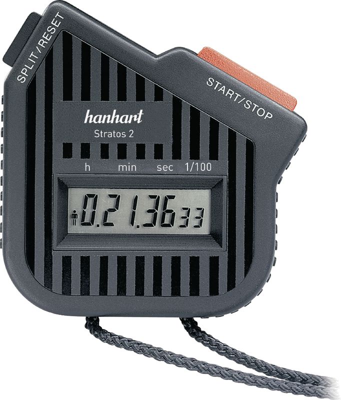 Auflösung 1/100", Anzeigezeit 9h 59' 59.99"Funktionale Stoppuhr mit robustem, ergonomischem ABS-Kunststoffgehäuse.