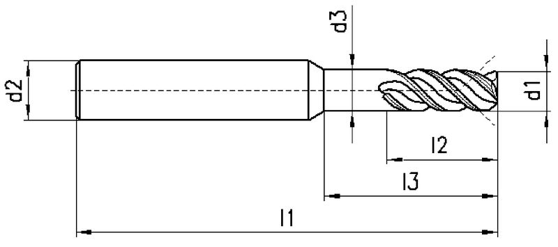 , mit stirnseitigem Kantenbruch 0.1-0.2 x 45°, ungleicher Drall, SwissMade, VHM, Ø 6-20 mm, DIXAL-Beschichtung, ungleicher Drallwinkel 41/48°, Schneidentoleranz d12, Zylindrisch (ohne Fläche, HA), Schafttoleranz h5, lang, ungleiche Teilung, mit Schutzfase, Anzahl Zähne 3, Innenkühlung radial, Werksnorm, HPC