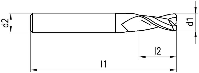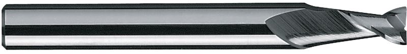 7582, mit stirnseitigem Kantenbruch 0.1-0.2 x 45°, SwissMade, VHM, Ø 1-5.5 mm, Drallwinkel 35°, Schneidentoleranz ≥Ø 3 e8, Zylindrisch (ohne Fläche, HA), Schafttoleranz h6, mittellang, Zentrumschnitt, mit Schutzfase, Anzahl Zähne 2, Werksnorm