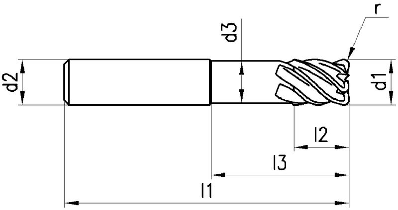 , SwissMade, VHM, Ø 6-12 mm, Xceed-Beschichtung, Drallwinkel 45°, Schneidentoleranz e8, Zylindrisch (ohne Fläche, HA), Schafttoleranz h6, lang, mit Eckenradius, Anzahl Zähne 4-6, Werksnorm