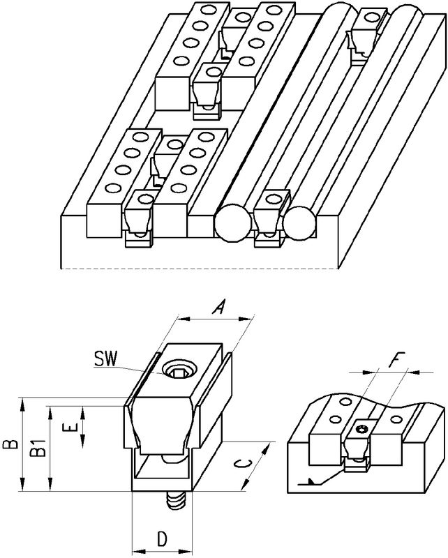Mass FEntspricht dem Abstand zwischen den Werkstücken. Die Gewindebohrung muss in der Mitte von Mass F erfolgen.