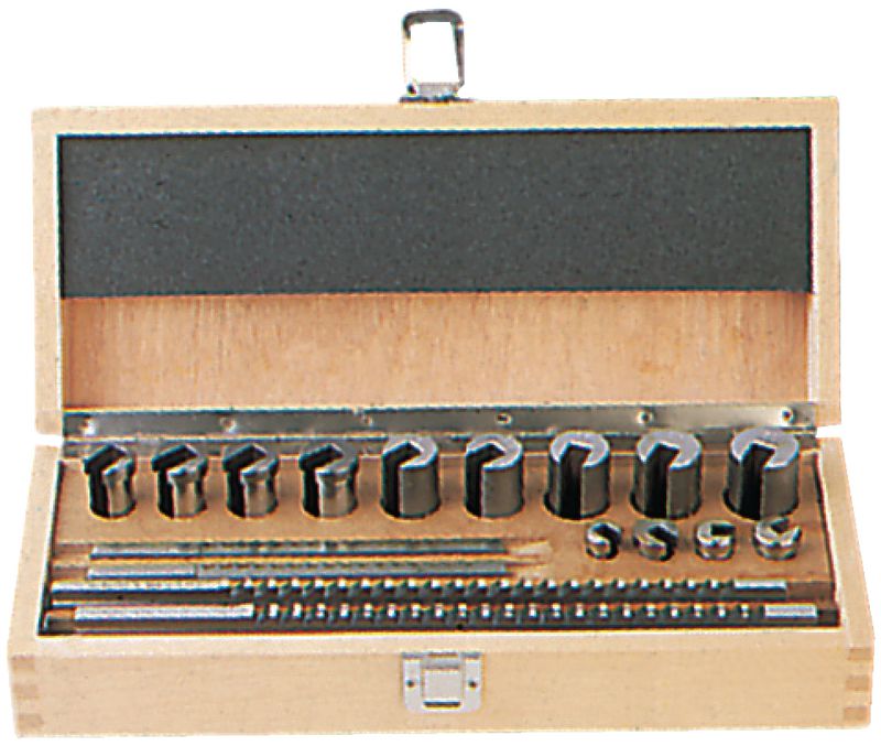 Komplett mit dazugehörigen Führungsbüchsen. Sichere, übersichtliche Aufbewahrung in massivem Holzetui.