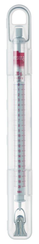 SwissMadeQualitätsfabrikat mit 360° Panorama-Ablesung durch die Doppelskalen. Genaue Ablesung dank dem farbigen Markierring. Messlage bis Modell 100 g nur vertikal.
