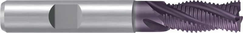 1381C, Typ HR-rekord, Schrupp-Profil mit feiner Rillenteilung, HSS-E CoF, Ø 4-28 mm, TiCN-Beschichtung, Drallwinkel 30°, Spanwinkel 10°, Schneidentoleranz k12, Weldon (mit Fläche, HB), Schafttoleranz h6, kurz, bis 28 mm mit Zentrumschnitt, mit Schutzfase, Anzahl Zähne 3-5, DIN 844K