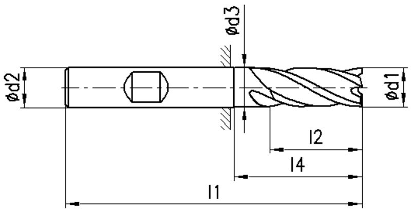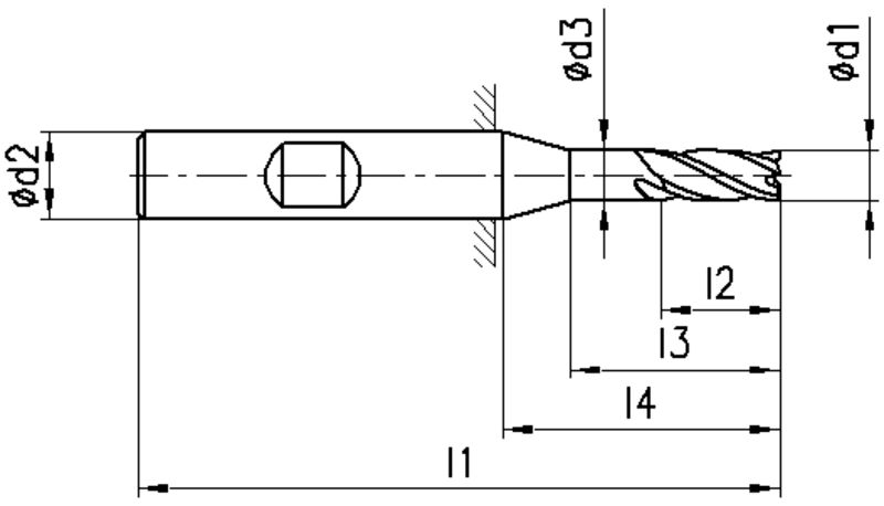 1311C, Typ N, HSS-E Co8, Ø 4-40 mm, TiCN-Beschichtung, Drallwinkel 30°, Spanwinkel 12°, Schneidentoleranz k10, Weldon (mit Fläche, HB), Schafttoleranz h6, kurz, bis 28 mm mit Zentrumschnitt, Scharfe Eckenausführung, Anzahl Zähne 4-6, DIN 844K