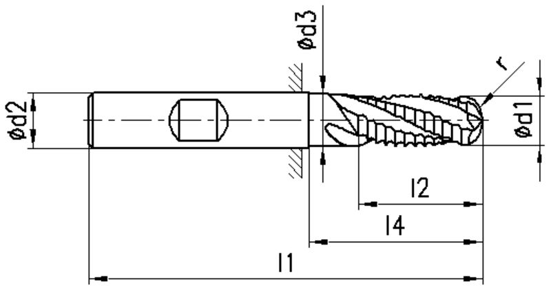 3333C, Typ HR, HSS-E CoF, Ø 6-20 mm, TiCN-Beschichtung, Drallwinkel 30°, Spanwinkel 10°, Schneidentoleranz js14, Weldon (mit Fläche, HB), Schafttoleranz h6, kurz, mit Eckenradius, Anzahl Zähne 4, DIN 1889BK