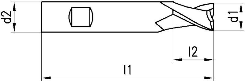 1851, Typ N, K10-20F, Kantenbruch stirnseitig 0.05-0.4 x 45°, VHM, Ø 6-20 mm, Drallwinkel 30°, Spanwinkel 12°, Schneidentoleranz h10, Weldon (mit Fläche, HB), Schafttoleranz h6, lang, Zentrumschnitt, mit Schutzfase, Anzahl Zähne 2, DIN 6527L