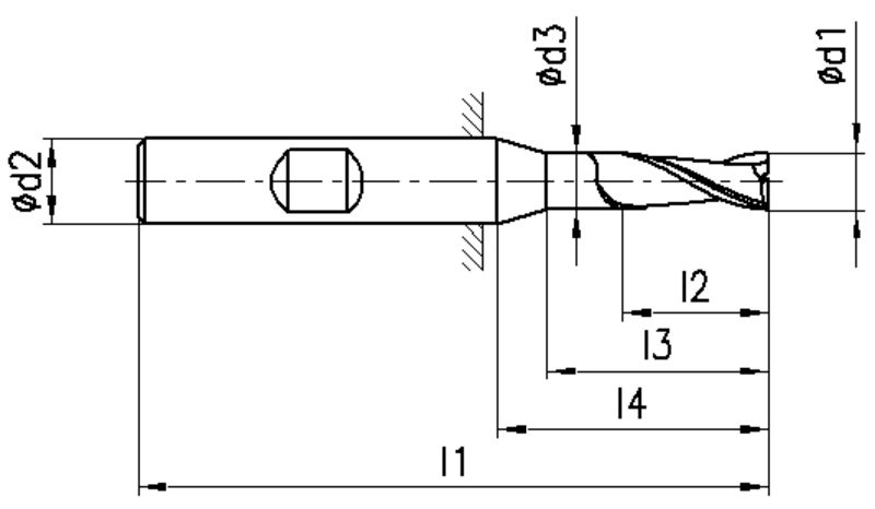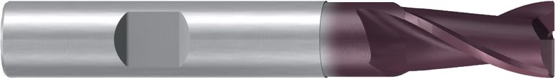 2513A, Typ N, K10-20F, VHM, Ø 2-16 mm, TiAlN-Beschichtung, ungleicher Drallwinkel 35/38°, Spanwinkel 9°, Schneidentoleranz h10, Weldon (mit Fläche, HB), Schafttoleranz h5, lang, Zentrumschnitt, ungleiche Teilung, mit Schutzfase, Anzahl Zähne 2, DIN 6527L