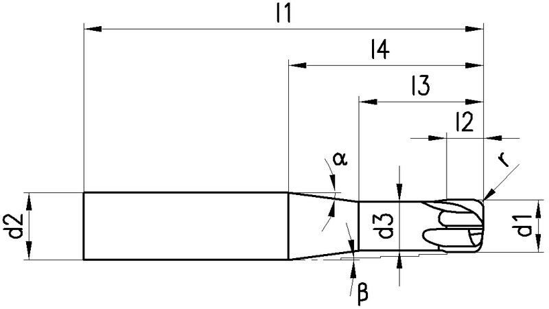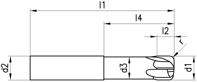 1936A, 2876A, 2832A, 2877A, Typ H, K3-15FH, VHM, Ø 3-16 mm, TiAlN-Beschichtung, Drallwinkel 0°, Spanwinkel -2°, Schneidentoleranz ± 0.01, Zylindrisch (ohne Fläche, HA), Schafttoleranz h5, kurz/lang, mit Eckenradius, Anzahl Zähne 4-8, Werksnorm