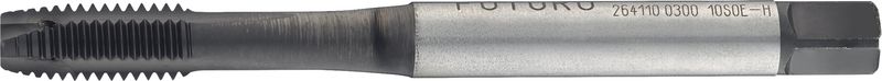 gerade Nuten, Schälanschnitt, HSS-E_PM, THL-Beschichtung, Metrisches ISO-Gewinde, Rechtsgewinde, Toleranzfeld 6HX, Anschnittform B (3.5-5.5 x P), Zylinderschaft mit Vierkant, Anzahl Zähne 3-4, Innenkühlung radial Leistungsklasse Für legierte und rostfreie Stähle, Kugelgraphitguss, langspanende Alu-Guss- und Knetlegierungen, langspanende Kupfer- und Messinglegierungen. Lochart: Durchgangsloch < 2.5 x d. Ausführungen: M5...M10: Schaft verstärkt, DIN 371 M12...M16: Schaft durchfallend, DIN 376