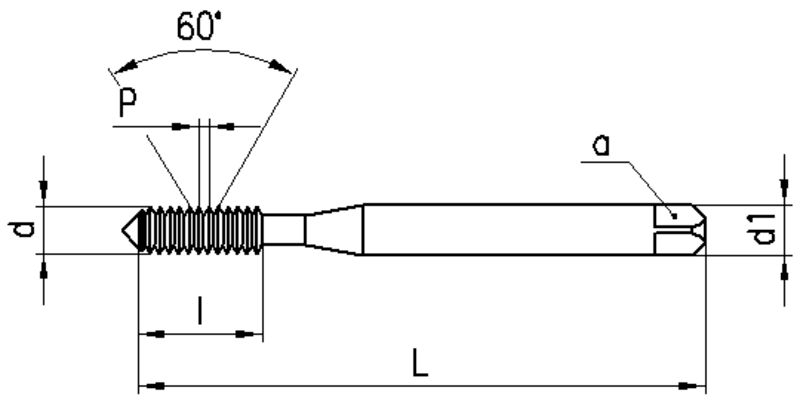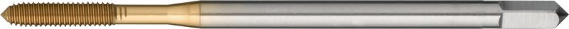 ohne Schmiernuten, HSS-E, TiN-Beschichtung, Metrisches ISO-Gewinde, Rechtsgewinde, Toleranzfeld 6HX, Anschnittform C (2-3 x P), Zylinderschaft mit Vierkant Leistungsklasse null Lochart: Durchgangs- und Sackloch. Ausführungen: M1...M2.5: Schaft verstärkt, DIN ~371