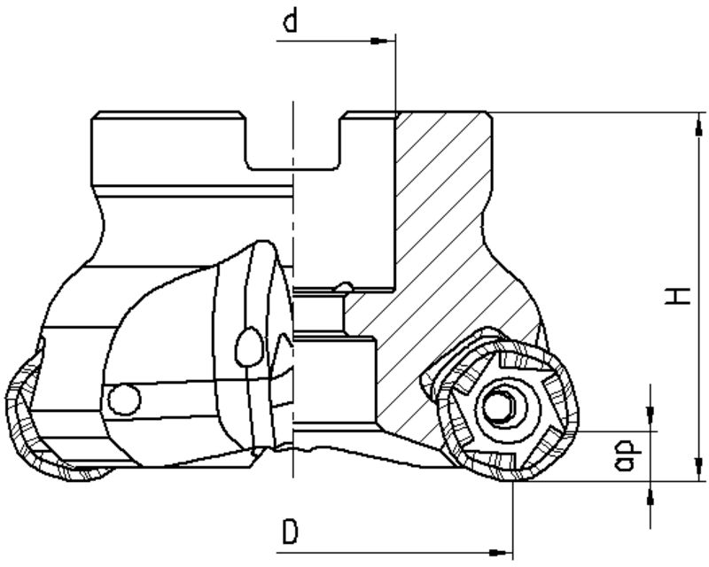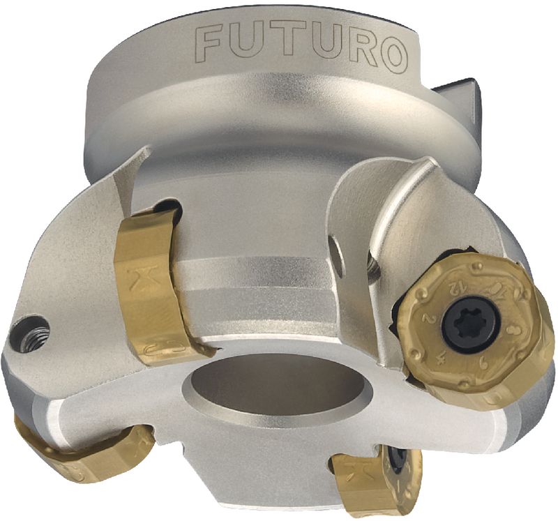 mit Innenkühlung, 12 effektiven Schneidkanten mit doppelseitigen und positiven Wendeplatten. Geeignet für Schnitttiefen bis 4.5mm.
