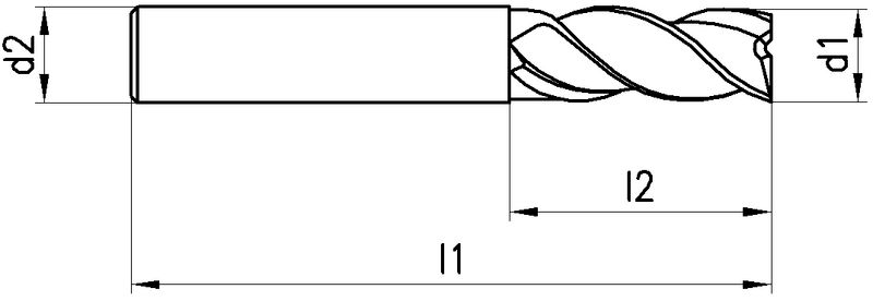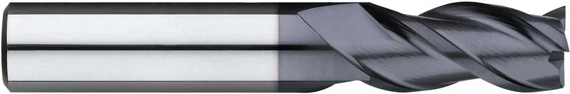 Typ N, 1 Schneide über Mitte, VHM, Ø 3-20 mm, TiAlN-Beschichtung, Drallwinkel 38°, Spanwinkel 6°, Zylindrisch (ohne Fläche, HA), Schafttoleranz h6, lang, Zentrumschnitt, Scharfe Eckenausführung, Anzahl Zähne 3, Werksnorm