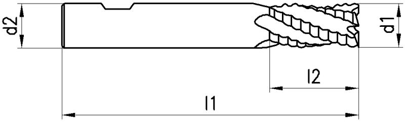 Typ NRF, mit feiner Rillenteilung, VHM, Ø 6-20 mm, TiAlN-Beschichtung, Drallwinkel 20°, Spanwinkel 9°, Weldon (mit Fläche, HB), Schafttoleranz h6, lang, Zentrumschnitt, Scharfe Eckenausführung, Anzahl Zähne 3-4, Werksnorm