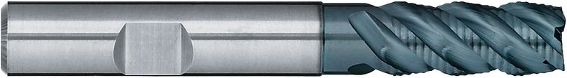 Typ NRF, mit feiner Rillenteilung, VHM, Ø 6-20 mm, TiAlN-Beschichtung, Drallwinkel 45°, Spanwinkel 6°, Weldon (mit Fläche, HB), Schafttoleranz h6, lang, Zentrumschnitt bis Ø 12mm, Scharfe Eckenausführung, Anzahl Zähne 4-6, Werksnorm