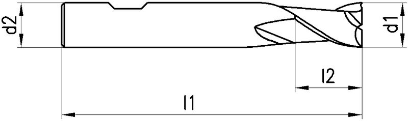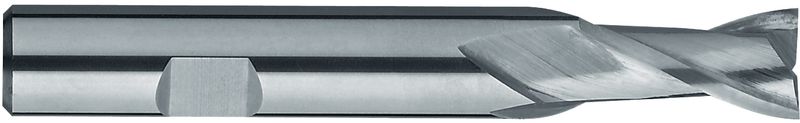 Typ N, VHM, Ø 2-20 mm, Drallwinkel 30°, Spanwinkel 12°, Schneidentoleranz h10, Weldon (mit Fläche, HB), Schafttoleranz h6, mittellang, Zentrumschnitt, Scharfe Eckenausführung, Anzahl Zähne 2, DIN 6527