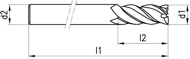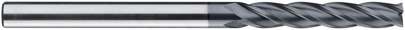 Typ N, VHM, Ø 3-12 mm, TiAlN-Beschichtung, Drallwinkel 30°, Spanwinkel 12°, Schneidentoleranz h10, Zylindrisch (ohne Fläche, HA), Schafttoleranz h6, extralang, Scharfe Eckenausführung, Anzahl Zähne 4, Werksnorm