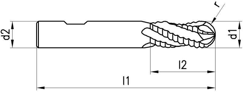 Typ N, X.Treme, VHM, Ø 6-20 mm, TiAlN-Beschichtung, Drallwinkel 20°, Spanwinkel 10°, Weldon (mit Fläche, HB), Schafttoleranz h6, lang, Zentrumschnitt, mit Vollradius, Anzahl Zähne 3-4, Werksnorm