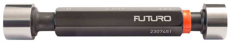 Grenzlehrdorn nach DIN 2245, ein Prüfmittel, das die Produktionsprozesse optimiert und die kontinuierliche Verbesserung der Produktqualität steigert. Der Messkörper ist gehärtet, stabilisiert und entspannt, feinstgeschliffen und geläppt. Der 6-Kant-Griff, ermöglicht eine bequeme und sichere Handhabung. Die Gutseite als auch die Ausschussseite bestehen aus hochwertigem Lehrenstahl.