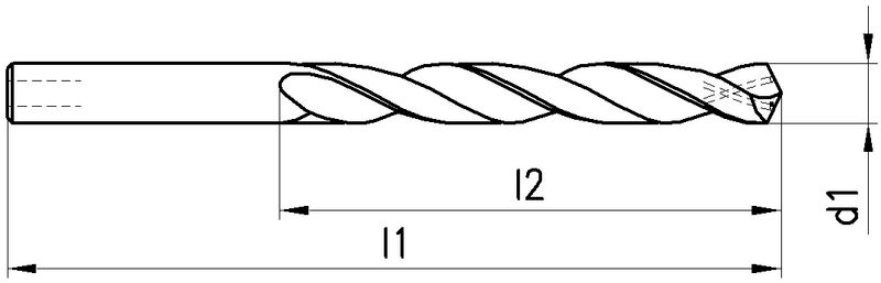 Typ N, lang, HSS, Ø 3-13 mm, Spitzenwinkel 130°, Zylindrisch (ohne Fläche, HA), DIN 340, Innenkühlung