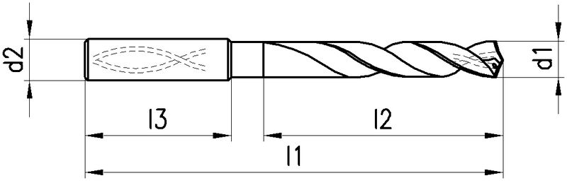 Typ 6511, K30/K40, 4 Führungsfasen, VHM, Ø 3-14 mm, TiAlN-Beschichtung, Spitzenwinkel 135°, Schneidentoleranz h7, Zylindrisch (ohne Fläche, HA), Schafttoleranz h6, Werksnorm, Bohrtiefe 20xD, Innenkühlung