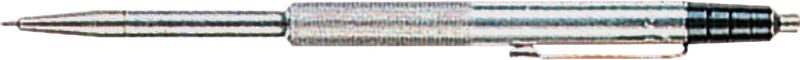 Handlicher, gerändelter Alu-Halter. Spitze bis zu 12 mm nachschleifbar. Der schlanke Kegel des Halters und die Reissnadel-Spitze von Ø 1.5 mm ermöglichen ein Anreissen auch an schwer zugänglichen Stellen.